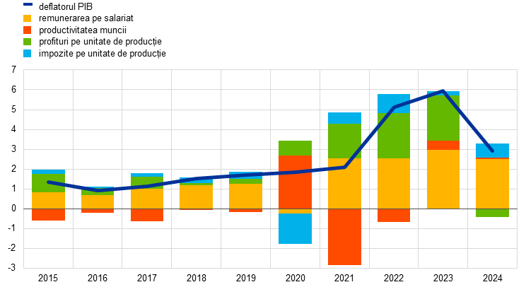 Pentru mai multe informații privind rolul de amortizor al profiturilor, a se vedea caseta intitulată „Profit indicators for inflation analysis considering the role of total costs“, Buletin economic, ediția 4/2024, BCE.