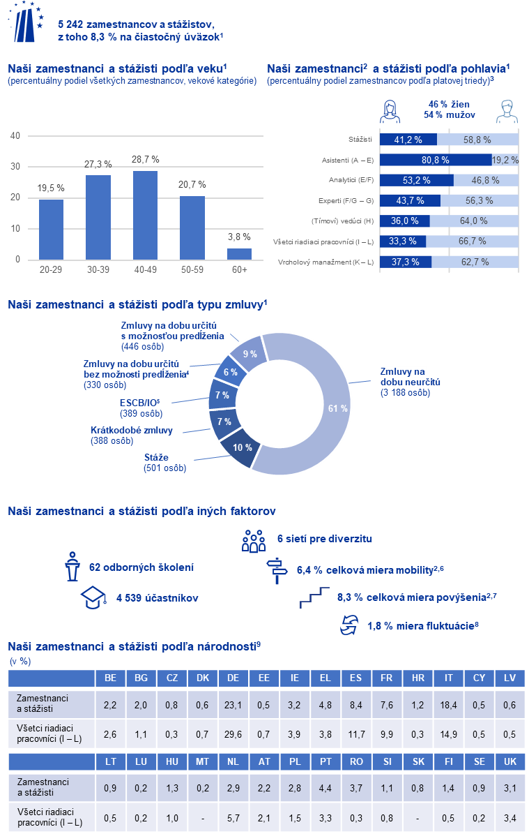 V roku 2024 návštevnícke centrum ECB privítalo 21 325 návštevníkov, ktorí tak získali príležitosť spoznať ECB zvnútra. | ECB zvýšila transparentnosť v súvislosti s uhlíkovou stopou Eurosystému a do zverejňovania klimatických finančných informácií zaradila viac ako 99 % aktív držaných na účely menovej politiky. |