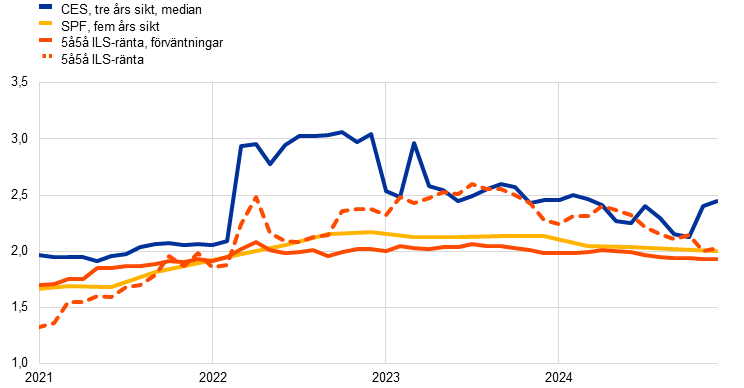För mer information om utvecklingen i den underliggande inflationen, se Lane, P.R., “Underlying inflation: an update”, tal vid 2024 års konverens på temat ”Inflation: Drivers and Dynamics”, som anordnades av Federal Reserve Bank of Cleveland och ECB, Cleveland, 24 oktober 2024.