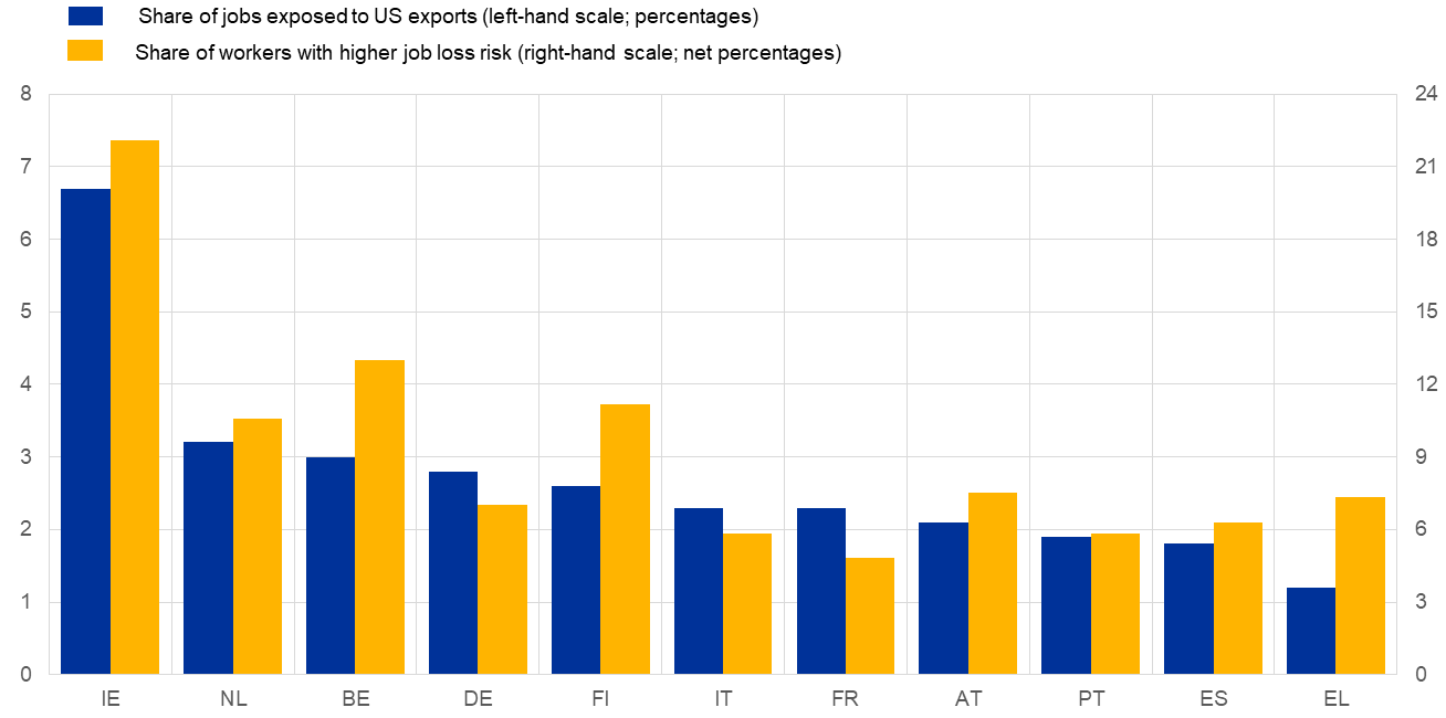Do European workers see US tariff hikes as a threat to their job security? According to an ECB survey, while most workers are fairly relaxed, those in export-oriented sectors and those with lower incomes are more worried about their jobs than before the tariff increase.