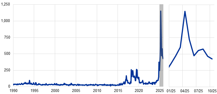 Trade policy uncertainty has risen significantly in the face of higher tariffs and tariff threats, adding a new layer of complexity to assessing the global economic outlook. Shifts in tariff and trade policy, unpredictable communication and the move away from rules-based multilateralism towards bilateral leverage have heightened uncertainty for firms and investors. This has influenced sourcing, production and investment decisions, and may weigh on trade dynamics, investment and overall macroeconomic performance. Moreover, uncertainty can affect expectations and dampen activity even in the absence of concrete policy changes. Monitoring it has therefore become crucial to assessing the economic outlook. Trade policy uncertainty has been an important part of the technical assumptions underlying recent rounds of the Eurosystem/ECB staff macroeconomic projections for the euro area.[1]