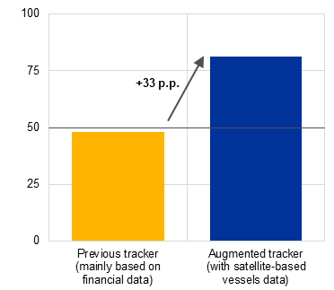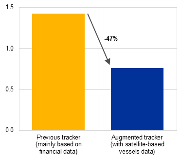 Satellite data substantially improve the forecast performance of the tracker, both in terms of directional accuracy (increased from 50% to 80%) and in terms of point accuracy (out-of-sample error cut by half). The out-of-sample directional forecast accuracy of the previous tracker was below 50%, meaning that it correctly predicted the direction of global trade growth less than half the time. By comparison, the revised tracker would have correctly predicted the direction in around 80% of cases over the period 2021-24 (Chart B, panel a).[4] Similar results are observed for point forecast accuracy, where the out-of-sample root mean squared error (RMSE) is reduced by around 50% (Chart B, panel b).