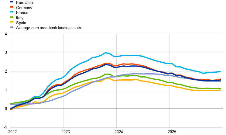 6. Owing to lags in the availability of data for the cost of borrowing from banks, data on the overall cost of financing for NFCs are only available up to December 2025.