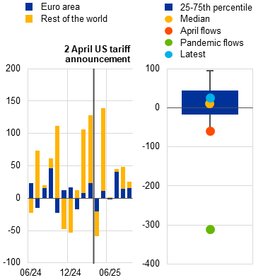 13. EPFR data indicate that flows to funds investing in the United States have rebounded strongly since April. This includes euro area investors and is especially the case for bond flows.