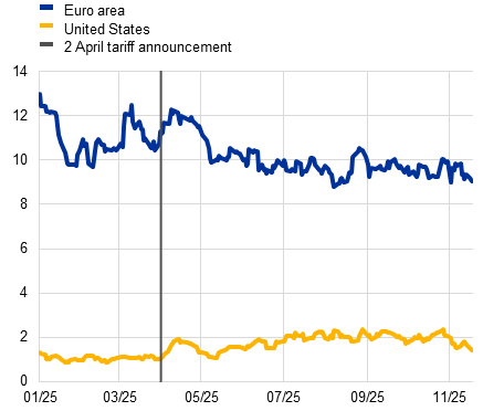 1. Some authors argue that the overall US dollar depreciation observed at this time was due to retaliatory tariffs imposed on the United States by its trade partners. See Corsetti, G., Lloyd, S. and Ostry, D., “Tariffs and US dollar depreciations: Not so surprising after all”, Centre for Economic Policy Research, 3 September 2025.