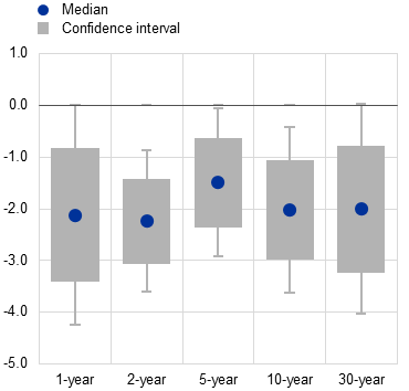 Some financial market proxies for investor appetite for US assets declined in April. The yield on ten-year US Treasuries surged by almost 50 basis points between 4 and 11 April, the third largest weekly increase since 1986. The spread between a risk-free benchmark, in this case maturity-matched overnight interest rate swap rates, and the yield on ten-year US Treasuries also declined.[2] This spread is sometimes referred to as the convenience yield, insofar as it captures investor willingness to accept the lower yield on US Treasuries because of their greater liquidity, perceived safety and eligibility as collateral. While the spread had already turned negative (as the supplementary leverage ratio regulation de facto discourages large banks from holding US Treasuries), it fell markedly in reaction to the US tariff announcement on 2 April, signalling a further erosion of convenience (Chart A.2, panel a).[3],[4] Empirical evidence confirms that tariff-related remarks made on social media by President Trump have generally been associated with somewhat lower US convenience yields across a range of maturities (Chart A.2, panel b). This suggests that investors responded to heightened policy uncertainty by repricing US Treasuries as they reassessed the potential economic fallout from escalating trade tensions.[5] The impact of the 2 April announcement, however, was much greater than usual.