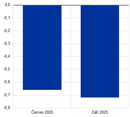 Inflace měřená HICP | −0,1 | −0,6 | −0,4 | 0,1 | 0,6 | 0,4 | 0,0 | 0,1 | 0,2 |