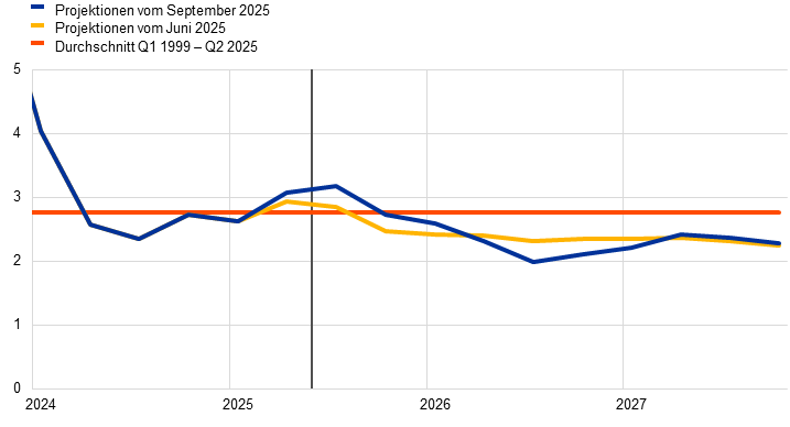 EZB-Projektionen | September 2025 | 1,2 | 1,0 | 1,3 | 2,1 | 1,7 | 1,9 | 2,4 | 1,9 | 1,8 |