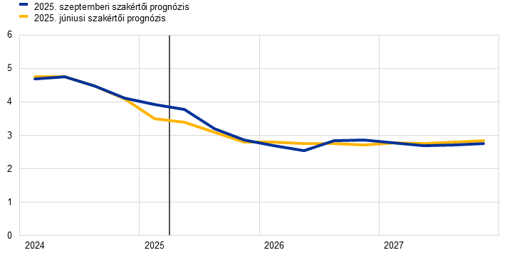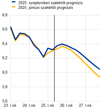 Az EKB szakértői prognózisai | 2025. szeptember | 1,2 | 1,0 | 1,3 | 2,1 | 1,7 | 1,9 | 2,4 | 1,9 | 1,8 |