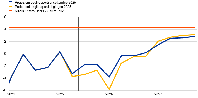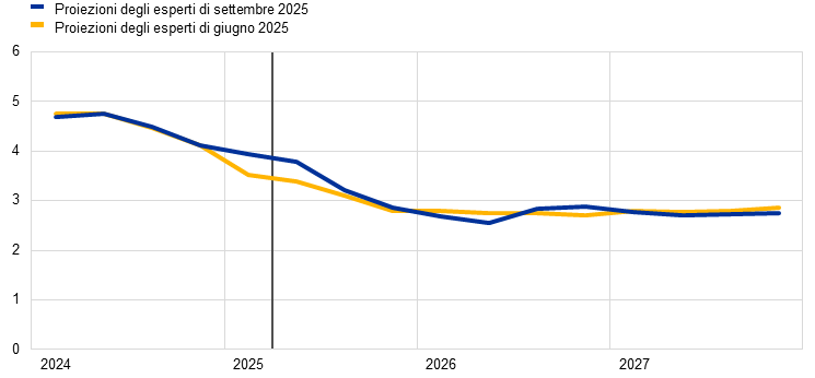 Le ipotesi tecniche sono aggiornate al 15 agosto 2025. Le proiezioni macroeconomiche per il contesto internazionale e l’area dell’euro sono state ultimate il 28 agosto 2025.