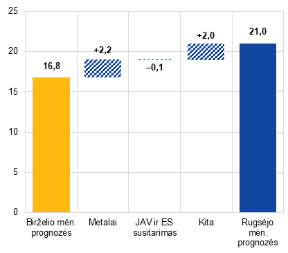 Naftos kainos | –4,6 | –16,6 | –18,2 | 4,3 | 16,9 | 19,0 | 1,3 | 5,8 | 5,8 |