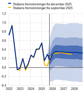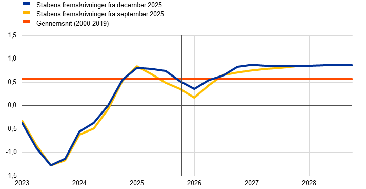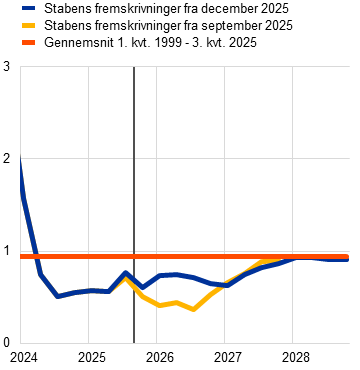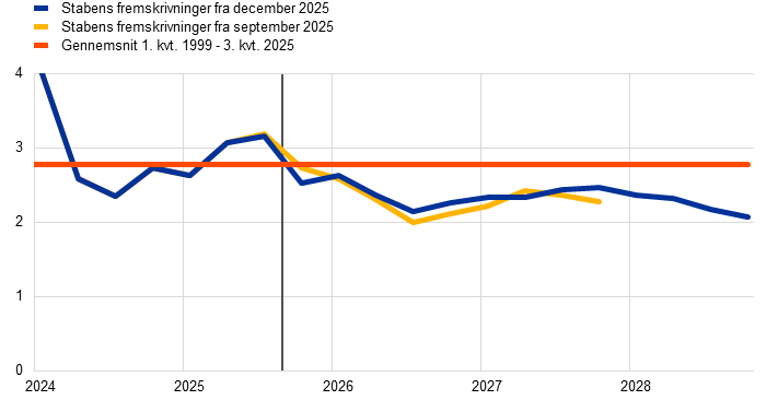 Eurosystemets stabs fremskrivninger | December 2025 | 1,4 | 1,2 | 1,4 | 1,4 | 2,1 | 1,9 | 1,8 | 2,0 | 2,4 | 2,2 | 1,9 | 2,0 | |