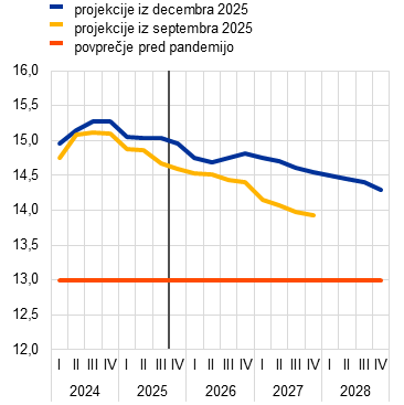 Projekcije strokovnjakov Eurosistema | december 2025 | 1,4 | 1,2 | 1,4 | 1,4 | 2,1 | 1,9 | 1,8 | 2,0 | 2,4 | 2,2 | 1,9 | 2,0 | |