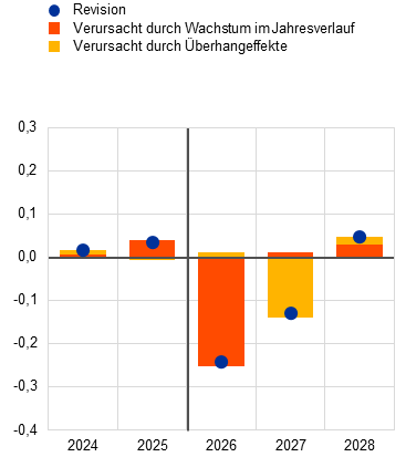 Revision der Projektionen für das Wachstum des realen BIPs gegenüber den Projektionen der Fachleute vom Dezember 2025