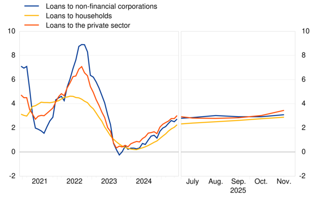 - Annual growth rate of broad monetary aggregate M3 increased to 3.0% in November 2025 from 2.8% in October