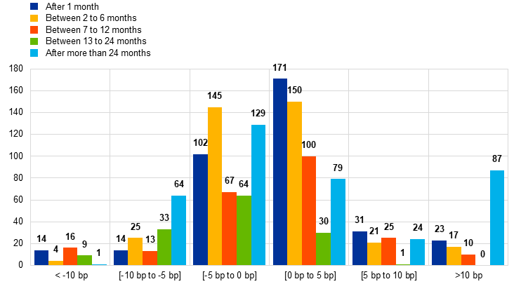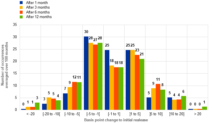 The distribution of revisions of euro area aggregates of MFI interest rate statistics displayed in Chart 4 does not include ad hoc revisions.