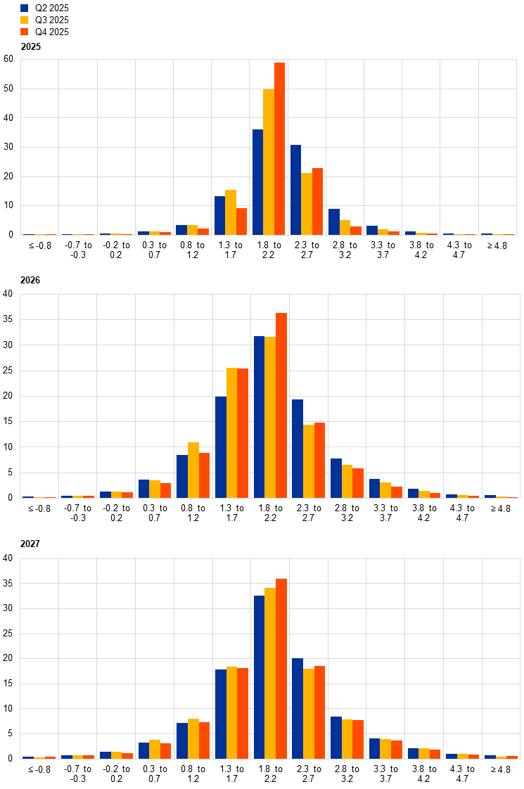 Aggregate probability distributions for expected inflation in 2025, 2026 and 2027