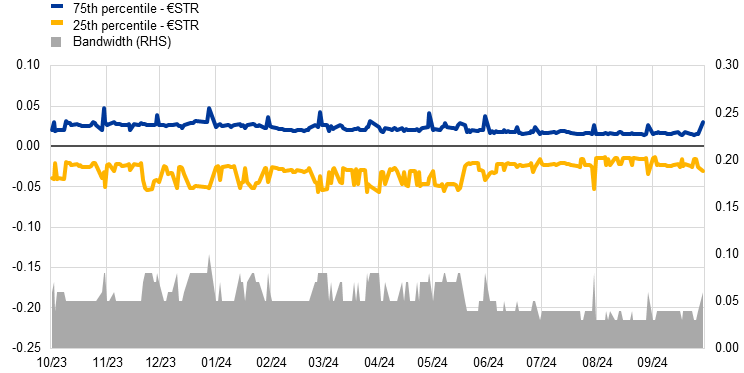 Spread between the €STR and rates at the 25th and 75th percentiles